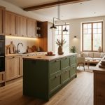 Kuchnia butelkowa zieleń i drewno: ciepło i styl